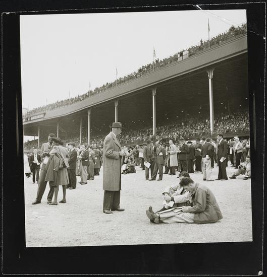 Aqueduct Race Track [Audience in the grandstand at a racetrack.]