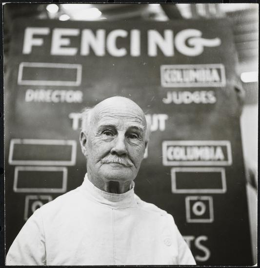 Columbia University [Coach Jimmy Murray with the fencing team.]