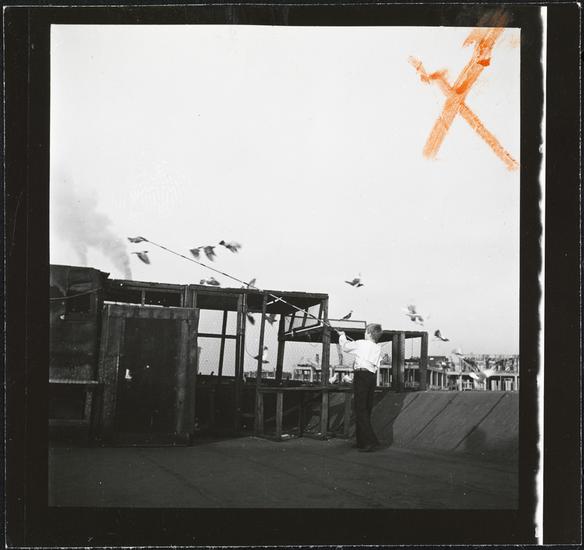 Shoe Shine Boy [Mickey releasing pigeons from a rooftop coop.]
