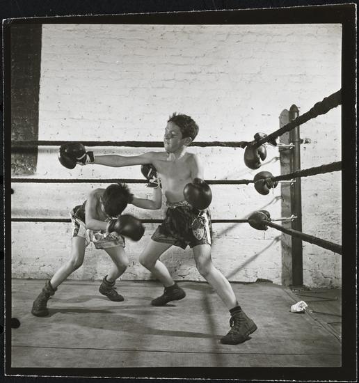 Boxing [at the] Police Athletic League [Two boys boxing.]