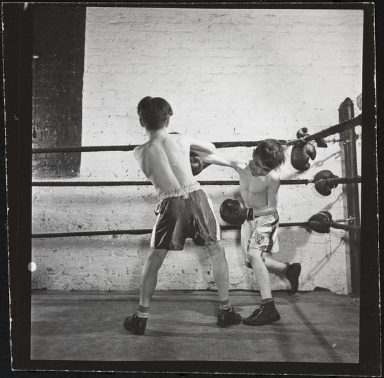 Boxing [at the] Police Athletic League [Two boys boxing.]