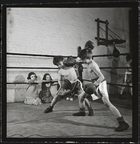 Boxing [at the] Police Athletic League [Two boys boxing.]