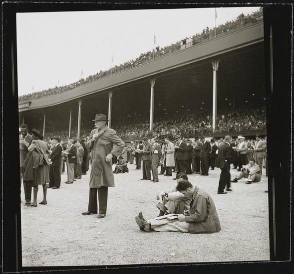 Description Story features images of both the Aqueduct Racetrack in Ozone Park, Queens and the Santa Anita Park Racetrack in Arcadia, California.