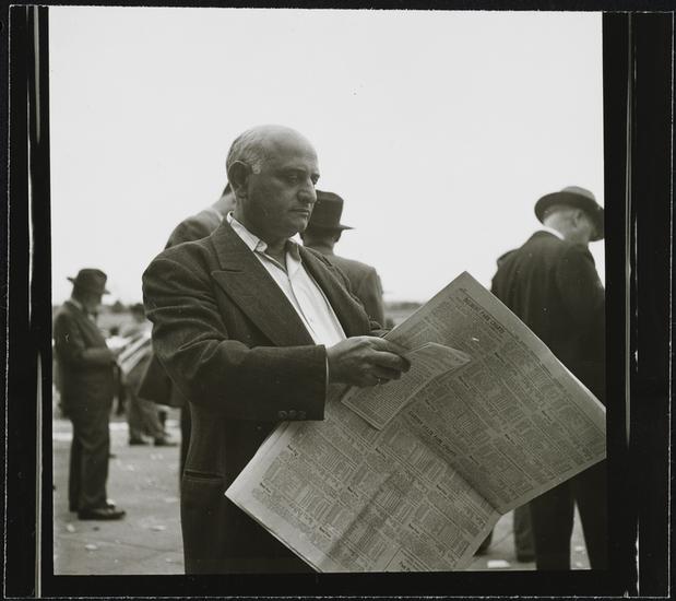 Aqueduct Race Track [Man reading a newspaper.]