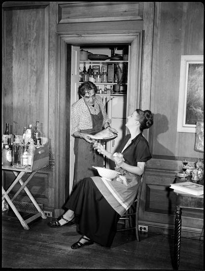Gypsy Rose Lee [Gypsy Rose Lee and Julio De Diego eating and drinking champagne.]