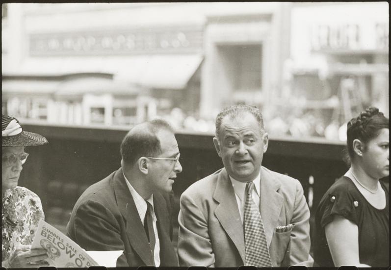 Bronx Street Scene [Man talking to a woman carrying newspapers.]