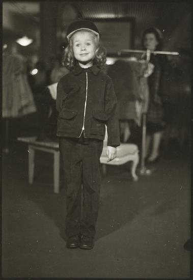 Bumper Baby Crop Now Gets Its First School Clothes [Boy modeling an outfit in a clothing store.]