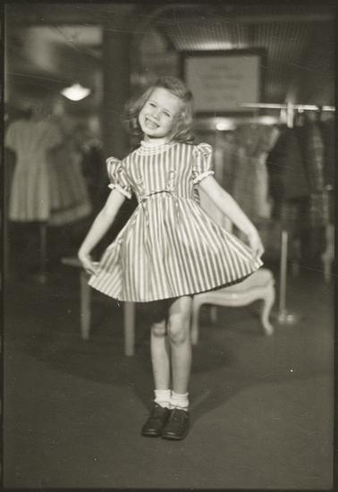 Bumper Baby Crop Now Gets Its First School Clothes [Girl modeling a dress.]
