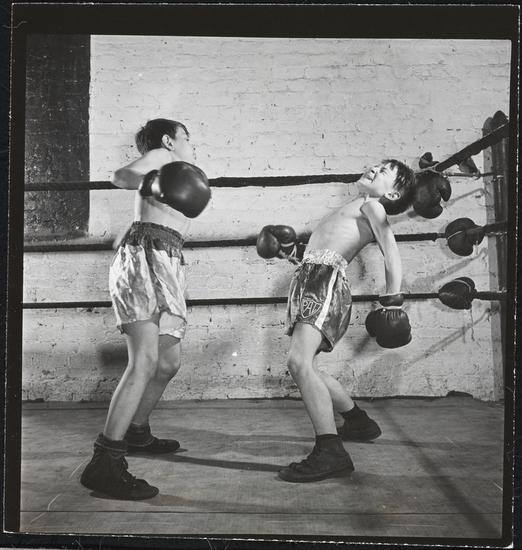 Boxing [at the] Police Athletic League [Two boys boxing.]