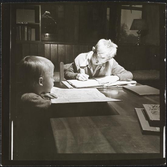 Shoe Shine Boy [Mickey and another boy reading and doing homework.]