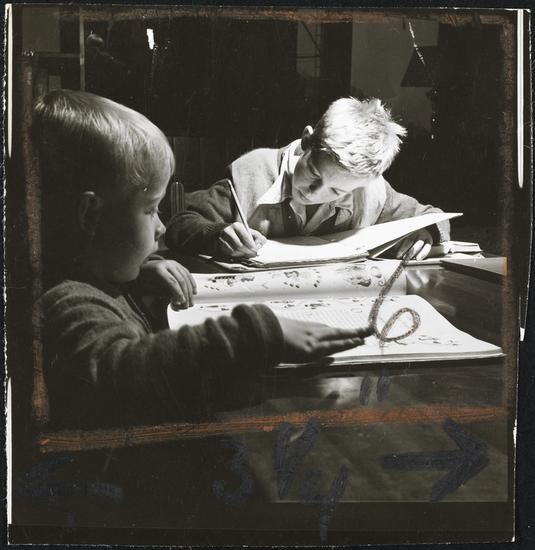Shoe Shine Boy [Mickey and another boy reading and doing homework.]