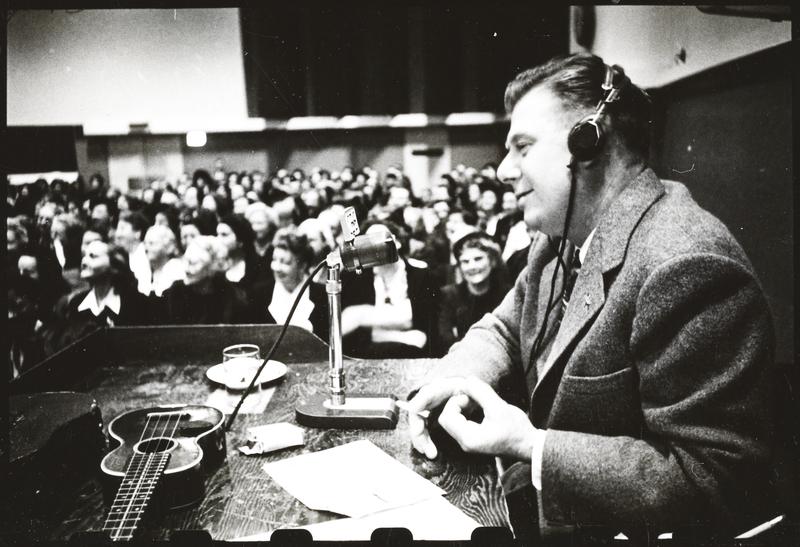 America's Man Godfrey [Arthur Godfrey hosting and playing the ukulele on his radio show.]