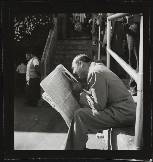 Aqueduct Race Track [Man reading a newspaper at the racetrack.]