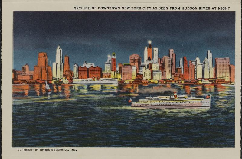 Skyline of Downtown New York City as seen from Hudson River at Night
