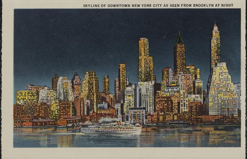 Skyline of Downtown New York City as Seen from Brooklyn at Night