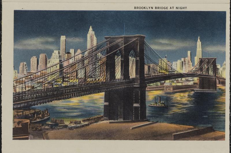 [Brooklyn Bridge at night.]