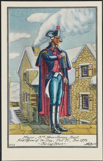 Major, 3rd New Jersey Regt. Field Officer of the Day, Fort Ti., Dec. 1776. Jersey Blues.