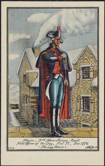 Major, 3rd New Jersey Regt. Field Officer of the Day, Fort Ti., Dec. 1776. Jersey Blues.