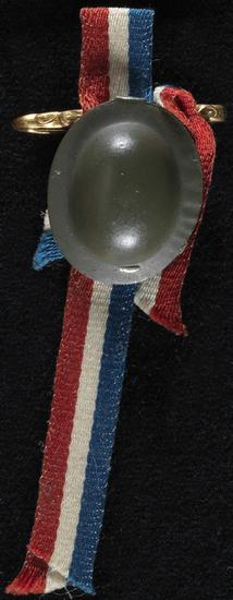 [Badge with red cross on ribbon in the colors of the Italian flag.]