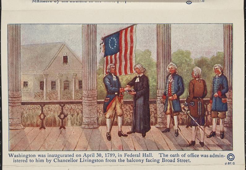 Federal Hall: Inauguration of Genl George Washington, the First President of the United States, on the 30th of April 1789.