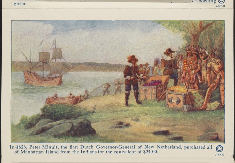 In 1626, Peter Minuit, the first Dutch Governor - General of New Netherland, purchased all of Manhattan Island from the Indians for the equivalent of $24.00.