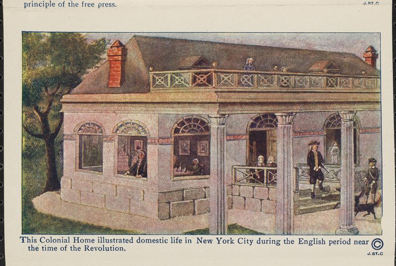 "The Dutch Doorway." - This picture respresents a Dutch doorway in New Amstersdam, a prominent resting place for family and social purposes in those days.