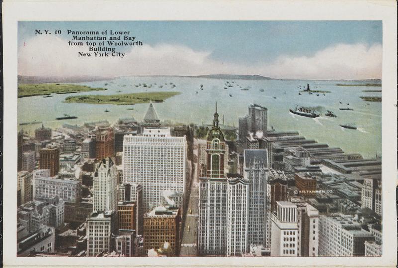 Panorama of Lower Manhattan and Bay from top of Woolworth Building New York City