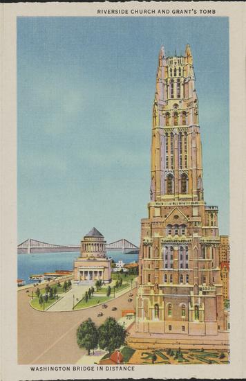 Riverside Church and Grant's Tomb, New York City. George Washington Bridge in Distance.