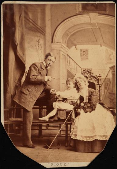 [James Lewis as Sammy Dymple, Mrs. G. H. Gilbert as Aunt Dorothy and Belle Wharton as Little Arthur in "Pique".]