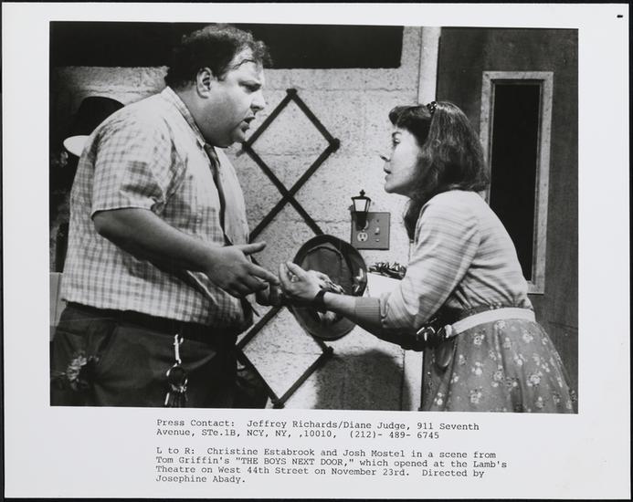 [Judy Kahan and Josh Mostel in "The Proposition".]