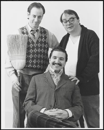 [Director Randy Brenner with playwright and actor Dan Butler and unidentified man.]