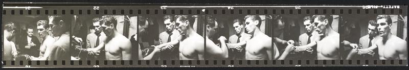 Walter Cartier, Prizefighter of Greenwich Village [Vincent Cartier helping Walter Cartier take his boxing gloves off.]