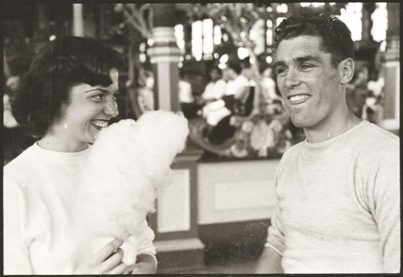Walter Cartier, Prizefighter of Greenwich Village [Walter Cartier eating cotton candy as a woman watches.]