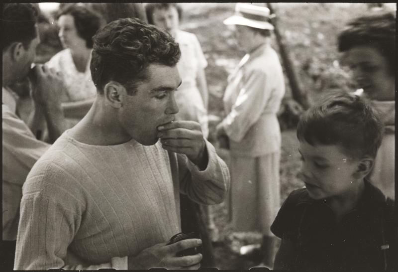 Walter Cartier, Prizefighter of Greenwich Village [Walter Cartier and a young boy eating at an outdoor gathering.]