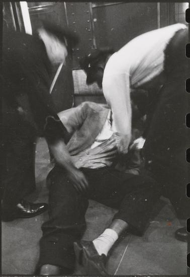 Life and Love on the New York City Subway [Man sleeping in a subway.]