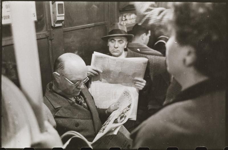 Life and Love on the New York City Subway [Men reading newspapers on a subway.]