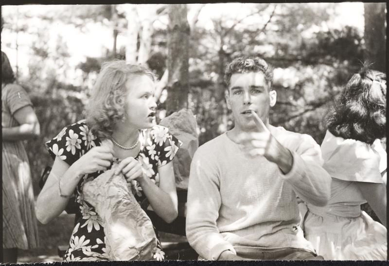Walter Cartier, Prizefighter of Greenwich Village [Walter Cartier talking to a woman at an outdoor gathering.]