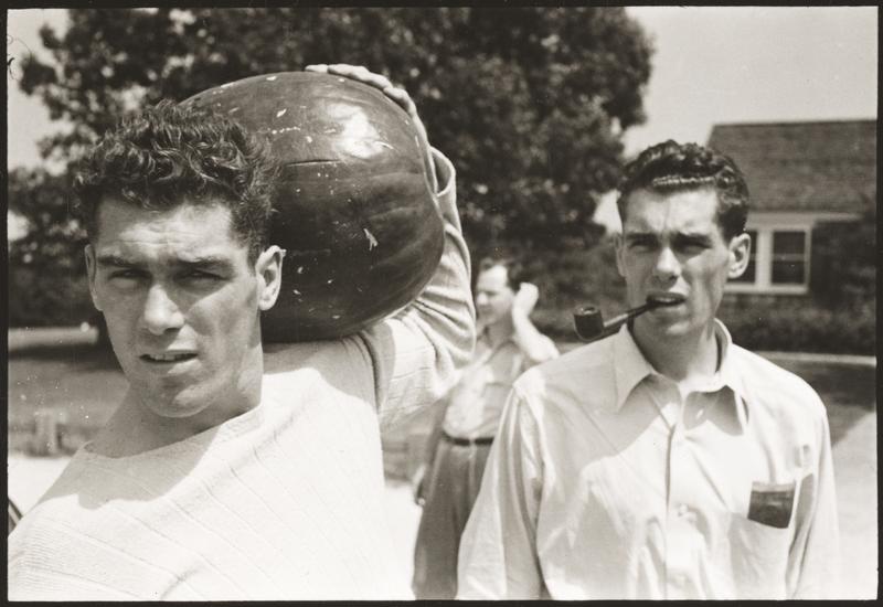 Walter Cartier, Prizefighter of Greenwich Village [Walter Cartier carrying a watermelon and greeting guests at an outdoor gathering.]