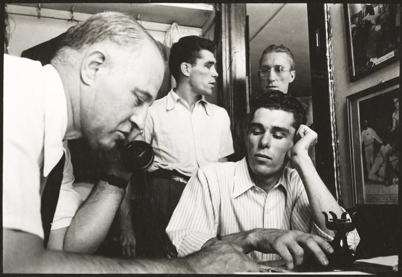 Walter Cartier, Prizefighter of Greenwich Village [Walter Cartier and other men listening as Bobby Gleason talks on the phone.]