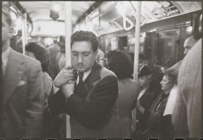 Life and Love on the New York City Subway [Passengers in a subway car, including a man sleeping on the seats.]