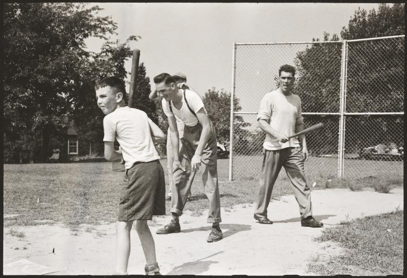Walter Cartier, Prizefighter of Greenwich Village [Walter Cartier and two boys watching a man play baseball.]