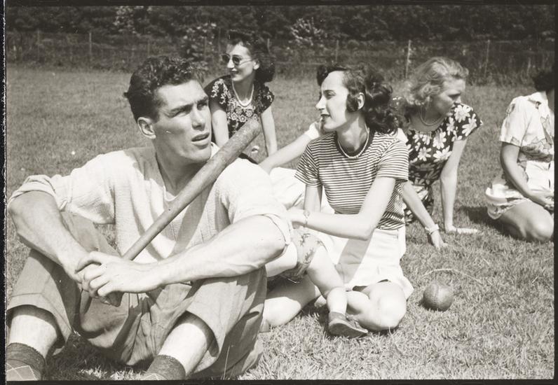 Walter Cartier, Prizefighter of Greenwich Village [Walter Cartier sitting on the grass, holding a baseball bat.]