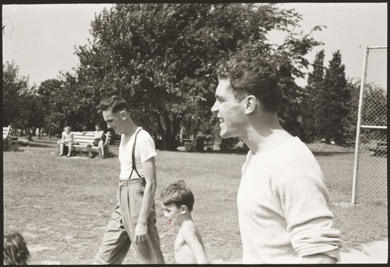 Walter Cartier, Prizefighter of Greenwich Village [Walter Cartier and other men watching a boy batting.]