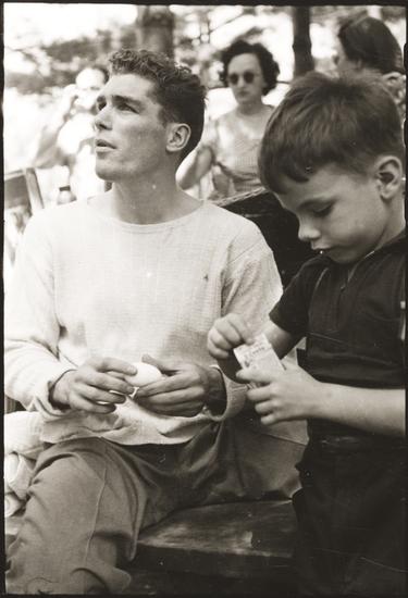 Walter Cartier, Prizefighter of Greenwich Village [Walter Cartier and a young boy eating at an outdoor gathering.]