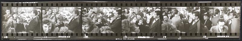 Life and Love on the New York City Subway [Man carrying flowers on a crowded subway.]