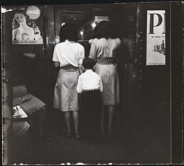 Life and Love on the New York City Subway [Women and a small boy looking out the windows of a subway car.]