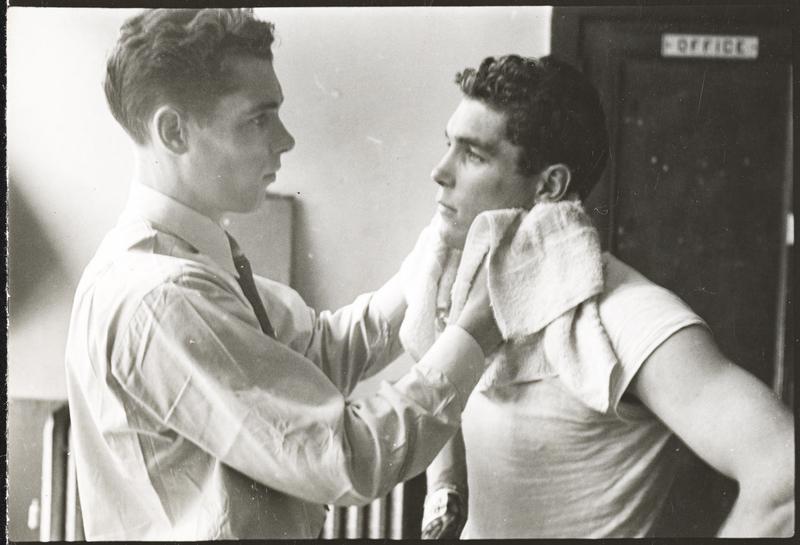 Walter Cartier, Prizefighter of Greenwich Village [Vincent Cartier applying petroleum jelly to Walter Cartier's face.]