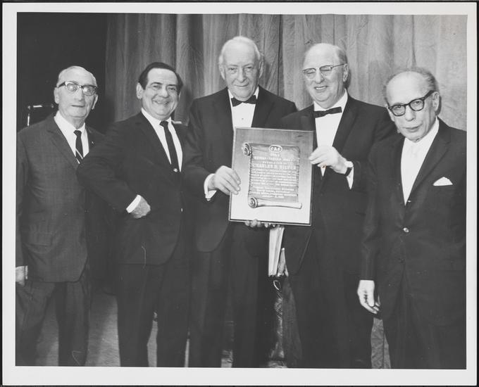 [Menasha Skulnik and Anna Teitelbaum with an unidentified couple.]