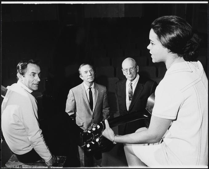 [Unidentified man and director George Abbott at a rehearsal for "Agatha Sue, I Love You".]