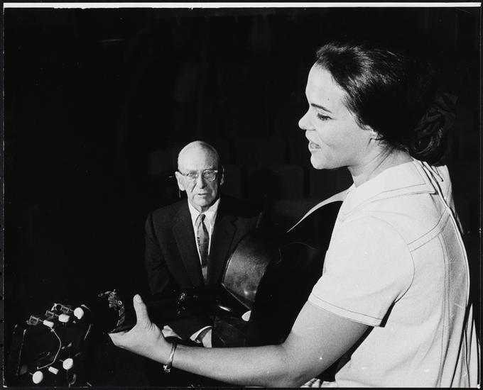[Unidentified man and director George Abbott at a rehearsal for "Agatha Sue, I Love You".]
